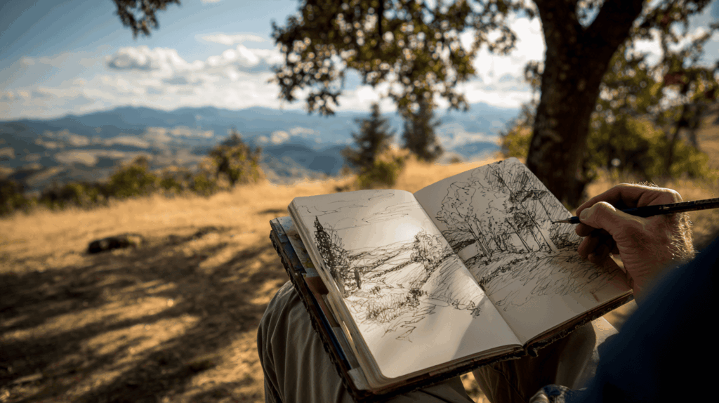 • Repoussoir Framing: Place foreground objects at the edges of the canvas to lead the viewer’s gaze inward and create spatial depth.