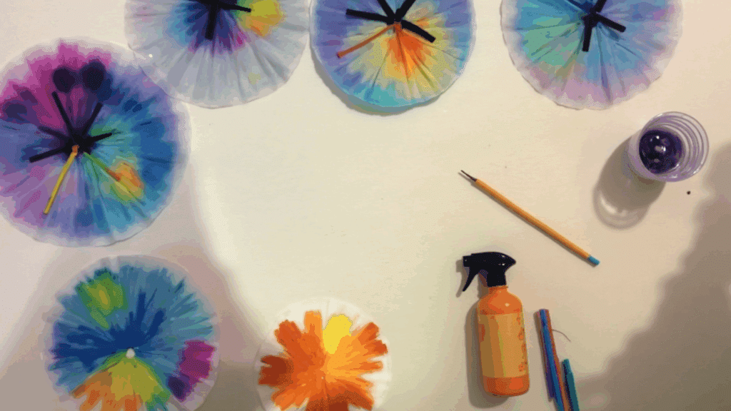 It is a fun and simple way to turn everyday coffee filters into colorful masterpieces. By adding markers, watercolors, or even food coloring, the filter’s thin paper soaks up the colors and creates beautiful tie-dye effects.